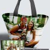 - Bolso combinado: Área exterior personalizada con 2 asas en color a juego y cierre, Área interior con forro y 2 bolsillos.