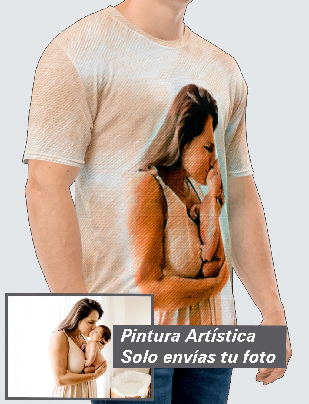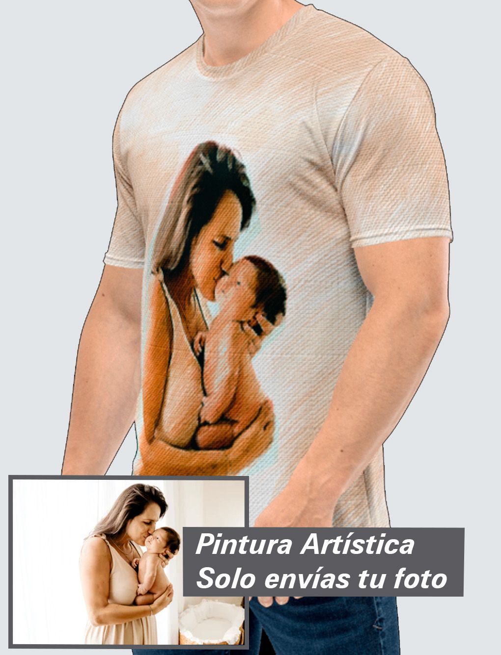 Haz realidad tener en tu cuerpo una pintura artística personalizada Premium, con tu imagen exclusiva a 360º y tan atrevida como quieras. Tu nueva camiseta de poliéster favorita te producirá la misma sensación que el algodón: un tacto super suave y máxima comodidad. Además no perderá color con los lavados.
