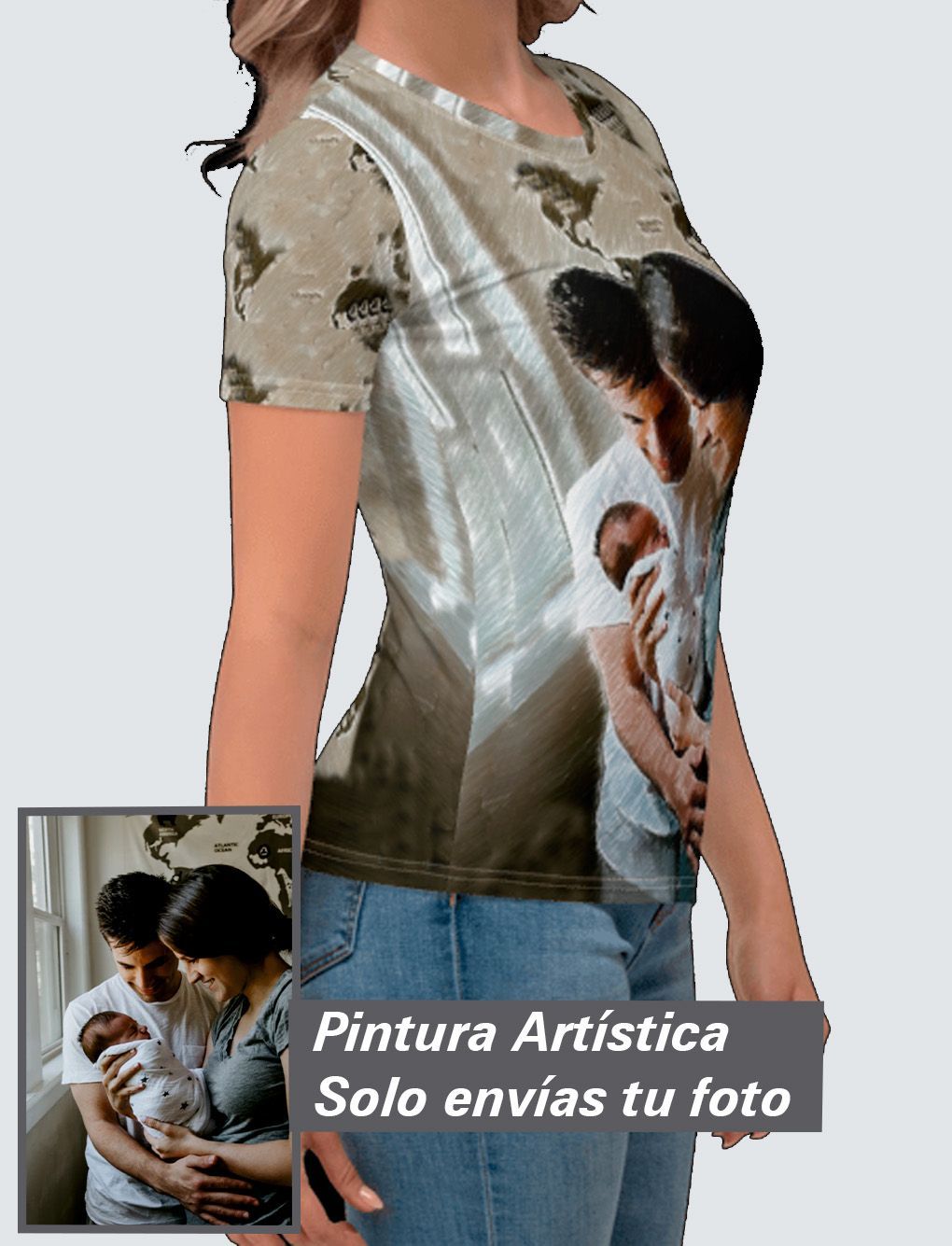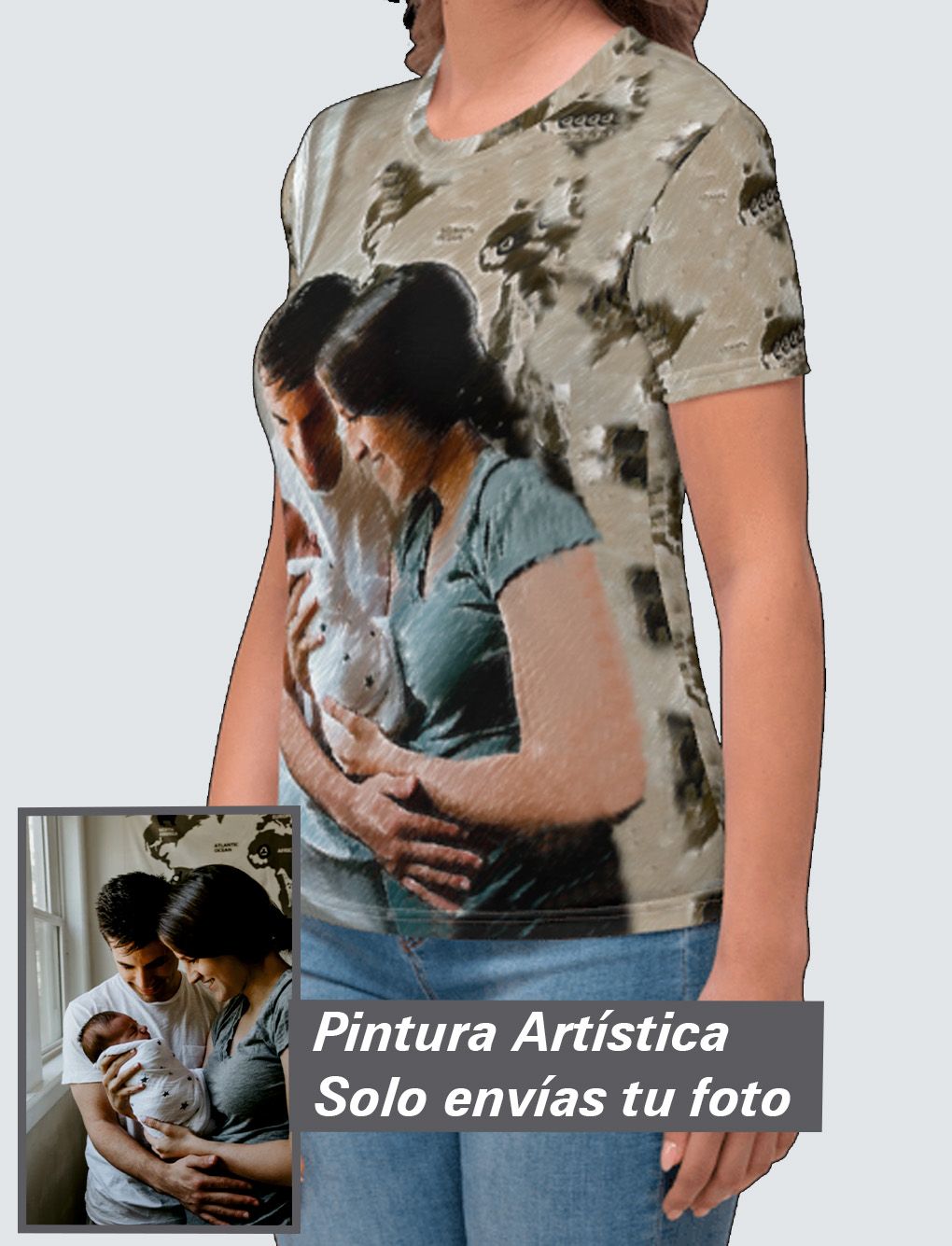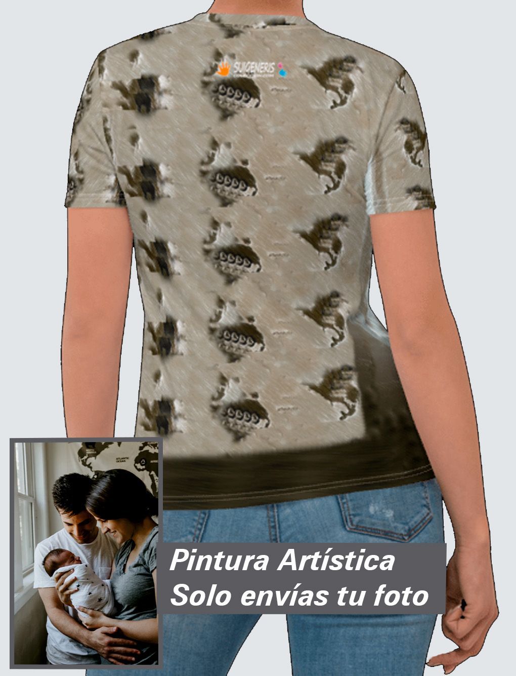 Haz realidad tener en tu cuerpo una pintura artística personalizada Premium, con tu imagen exclusiva a 360º y tan atrevida como quieras. Tu nueva camiseta de poliéster favorita te producirá la misma sensación que el algodón: un tacto super suave y máxima comodidad. Además no perderá color con los lavados.